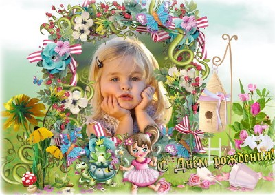 Детская поздравительная рамка - С Днем рождения PSD | 4961х3508 | 300 dpi | 85 Mb Автор: Anutochkaaa