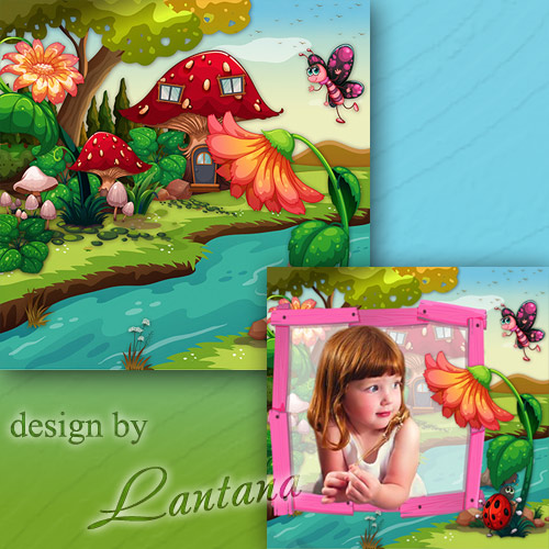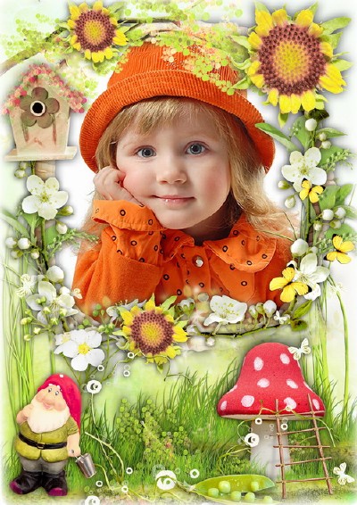 Многослойный детский PSD исходник с рамкой для оформления фото и создания коллажей - На полянке дом грибной, окна есть и двери в нём PSD | 7677 x 7677 | 300 dpi | 208 MB Author: Lantana
