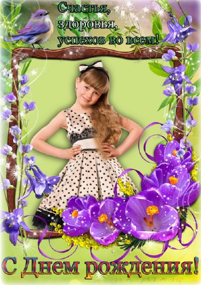 Поздравительная рамка для фото с красивым оформлением - С Днем рождения! :