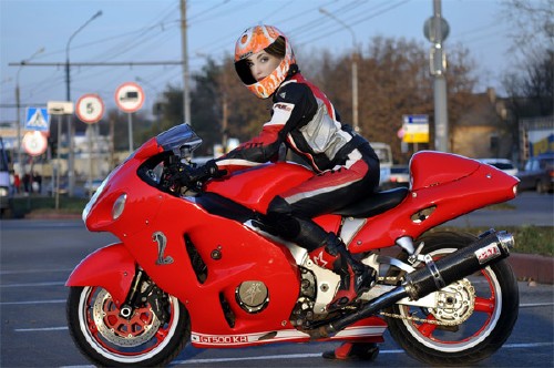 PSD шаблон для девушек - Байкерша на дороге :